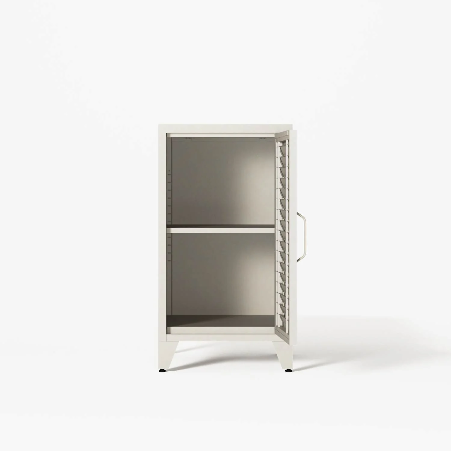 Mandarin cabinets are available in a range of colours and formats. Made entirely from metal with a finish that captures the texture and depth of traditional wood paint, every component is precision-cut and fitted to preserve the soul of traditional wooden cabinetry — reimagined through industrial craftsmanship.