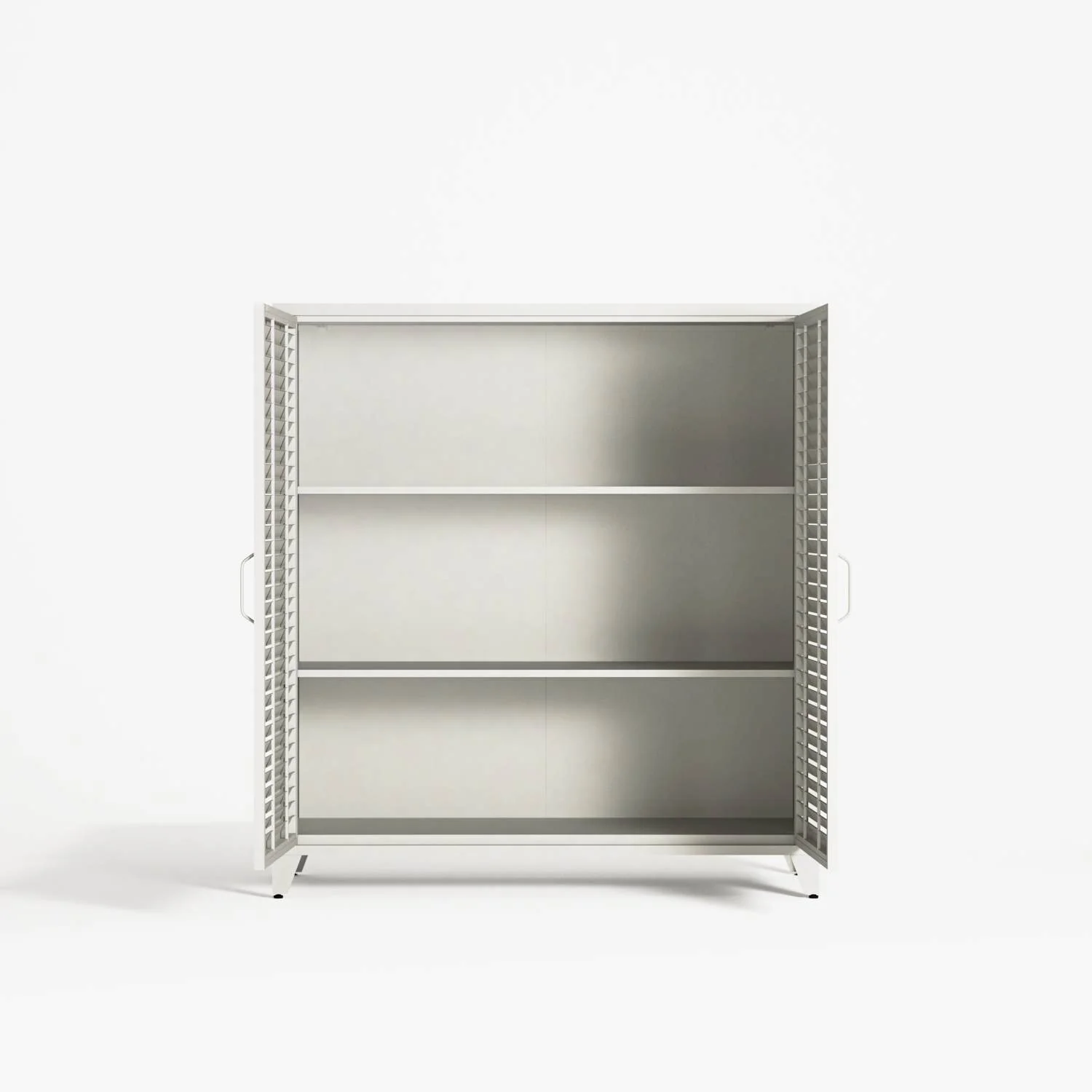 Mandarin cabinets are available in a range of colours and formats. Made entirely from metal with a finish that captures the texture and depth of traditional wood paint, every component is precision-cut and fitted to preserve the soul of traditional wooden cabinetry — reimagined through industrial craftsmanship.