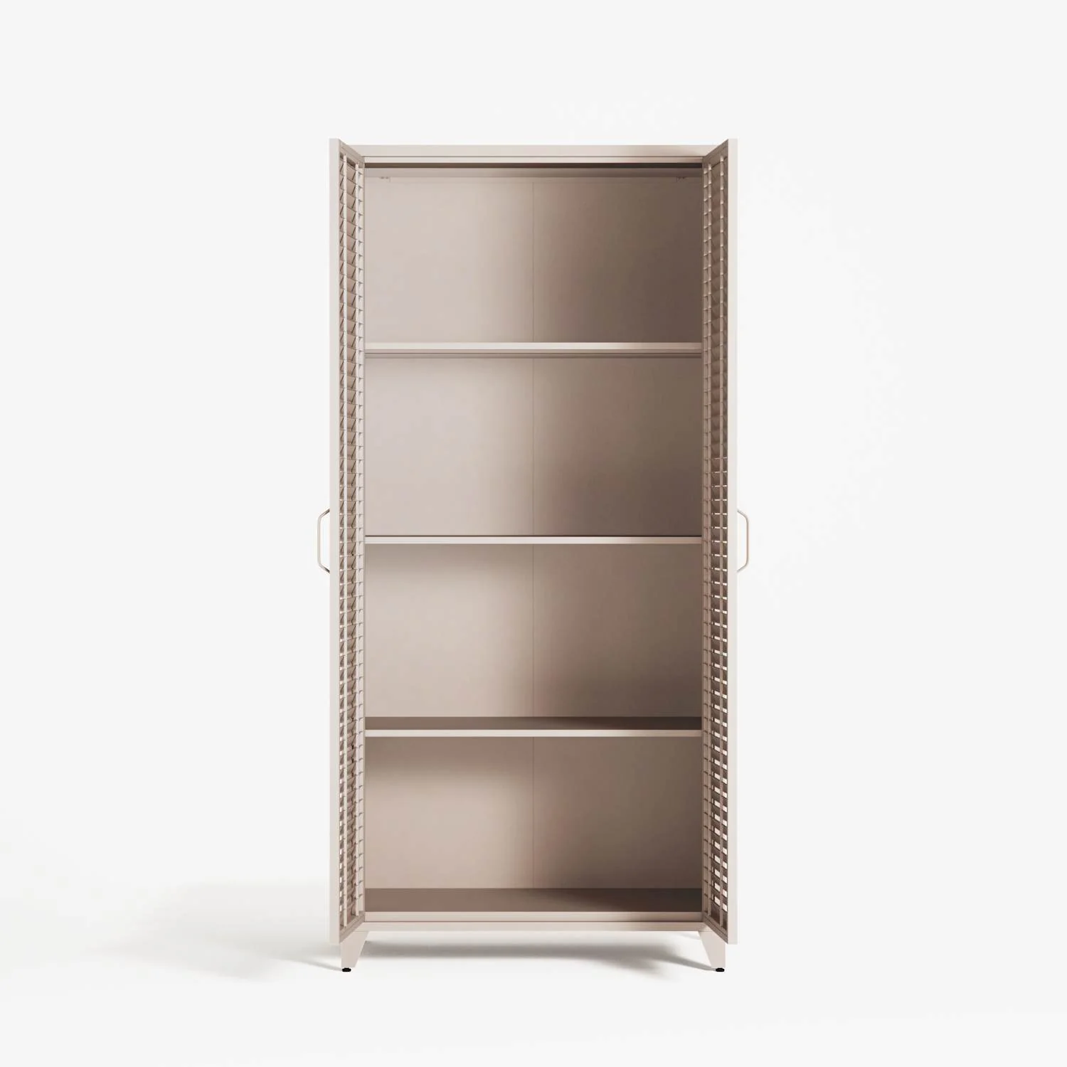 Mandarin, double door wardrobe, finished in the colour Mushroom. A classic silhouette with shuttered doors — reimagined by Workdeco through precise, contemporary manufacturing.