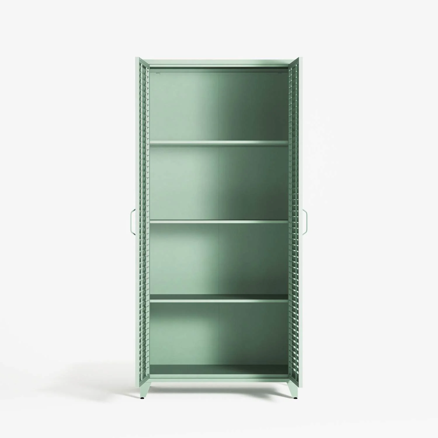 Mandarin, double door wardrobe, finished in the colour Sage. A classic silhouette with shuttered doors — reimagined by Workdeco through precise, contemporary manufacturing.