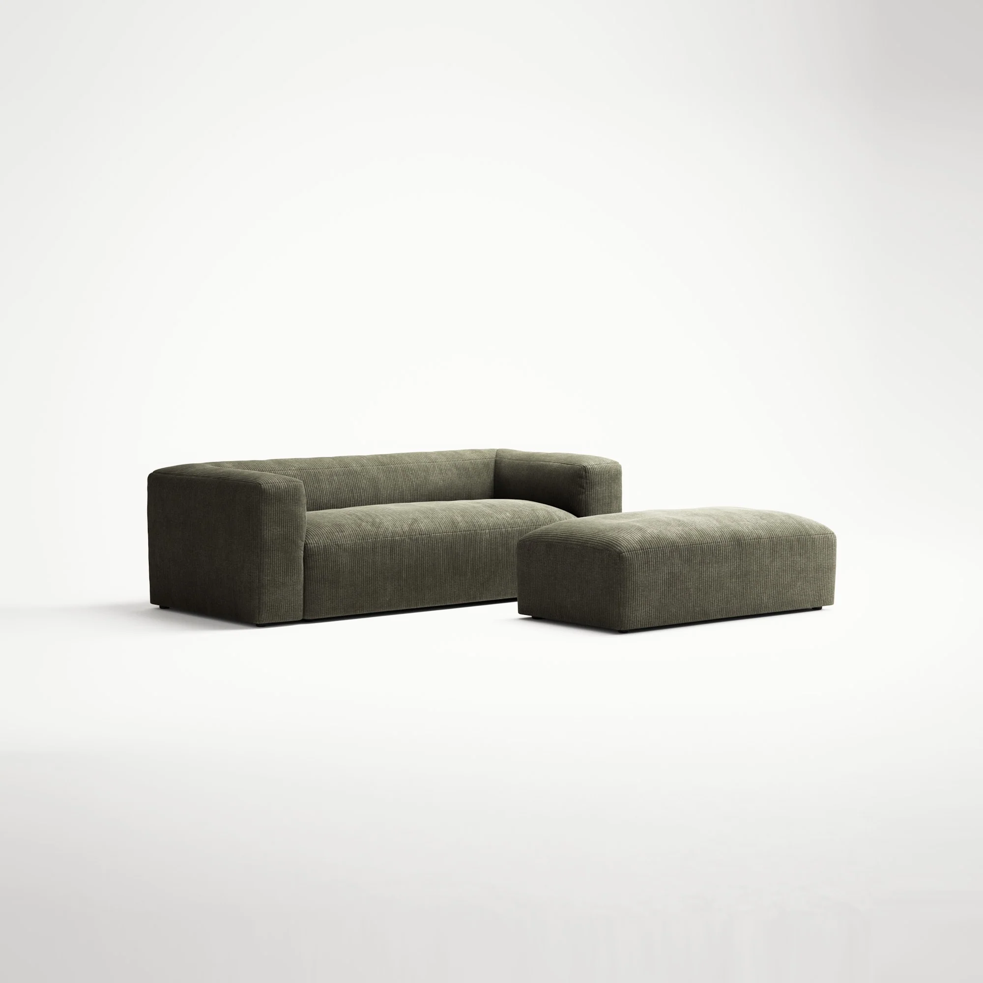 MONOLITH - 2 Seater with Pouf - Bold Corduroy Moss Green