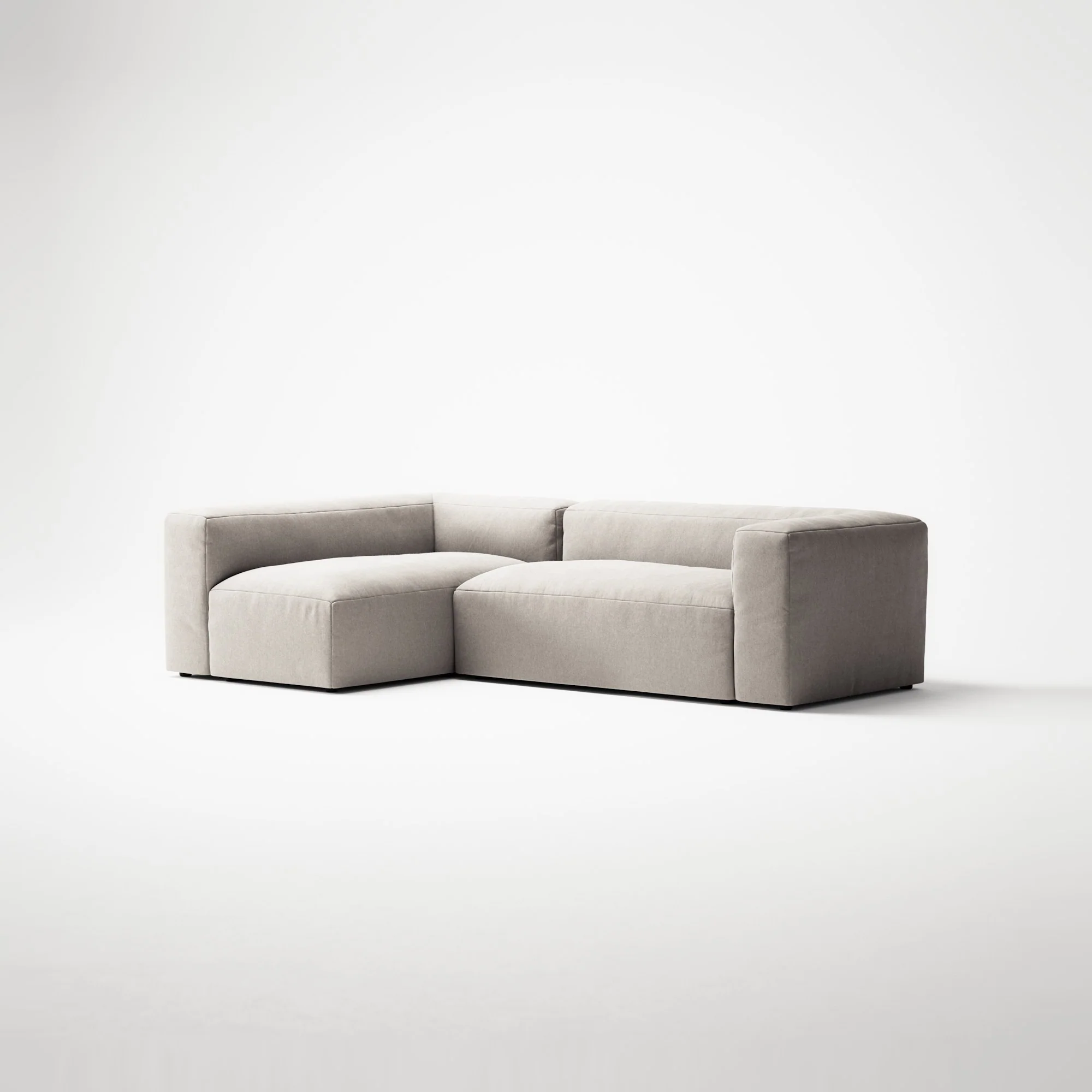 MONOLITH 3-Seater-with-Chaise-Lounge Left — a familiar form, distilled to its essence. Cubic in character, soft in presence, Monolith captures the sculptural spirit of 1970s Italian design and reinterprets it through considered proportions and contemporary manufacturing.